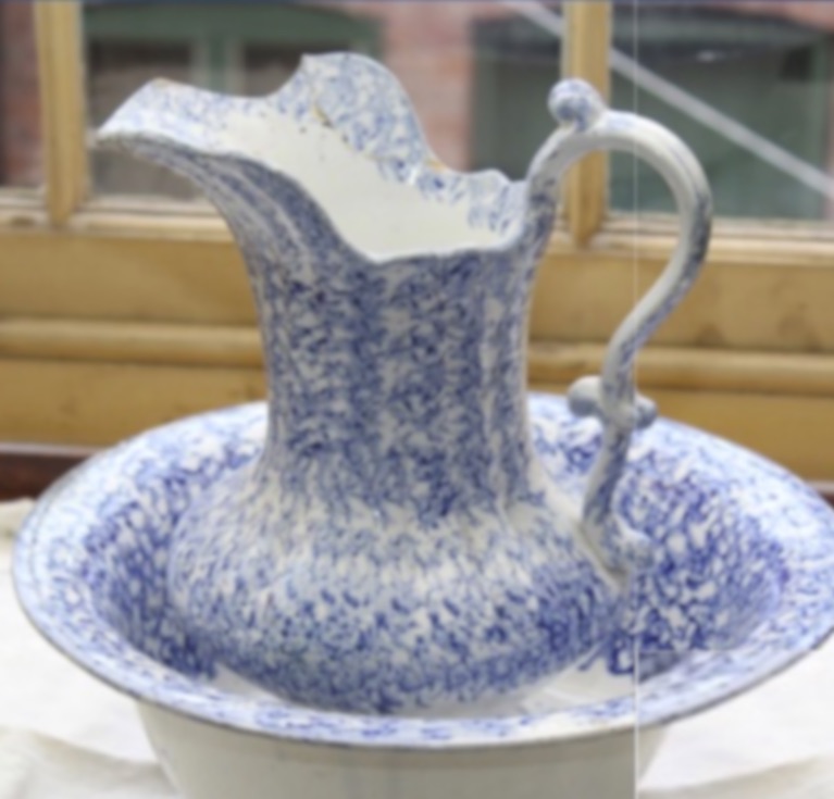Beneath the window there is a small table with a basin & jug standing on it. Adelaide would fill the jug with water each evening before the family went to bed. They would then each take it in turns to wash before going to bed and when they arose in the morning. Lawrence would also shave there. Woe betide anyone who uses too much water!