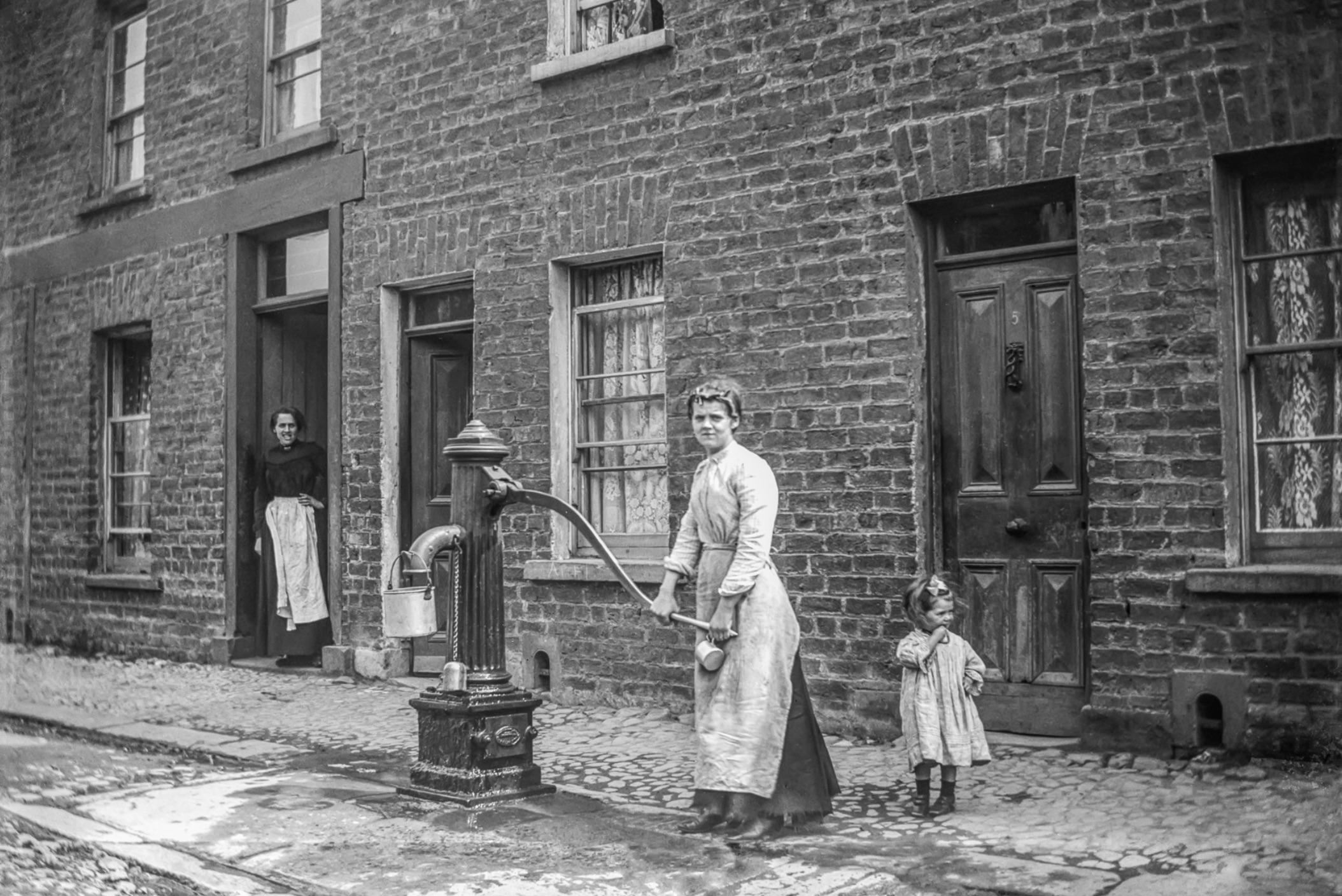 By the 1870s there may not have been the need to get water from a well. Most courts would have either a pump or piped water from a standpipe in the courtyard.
