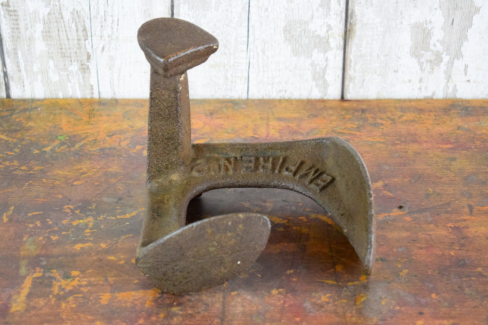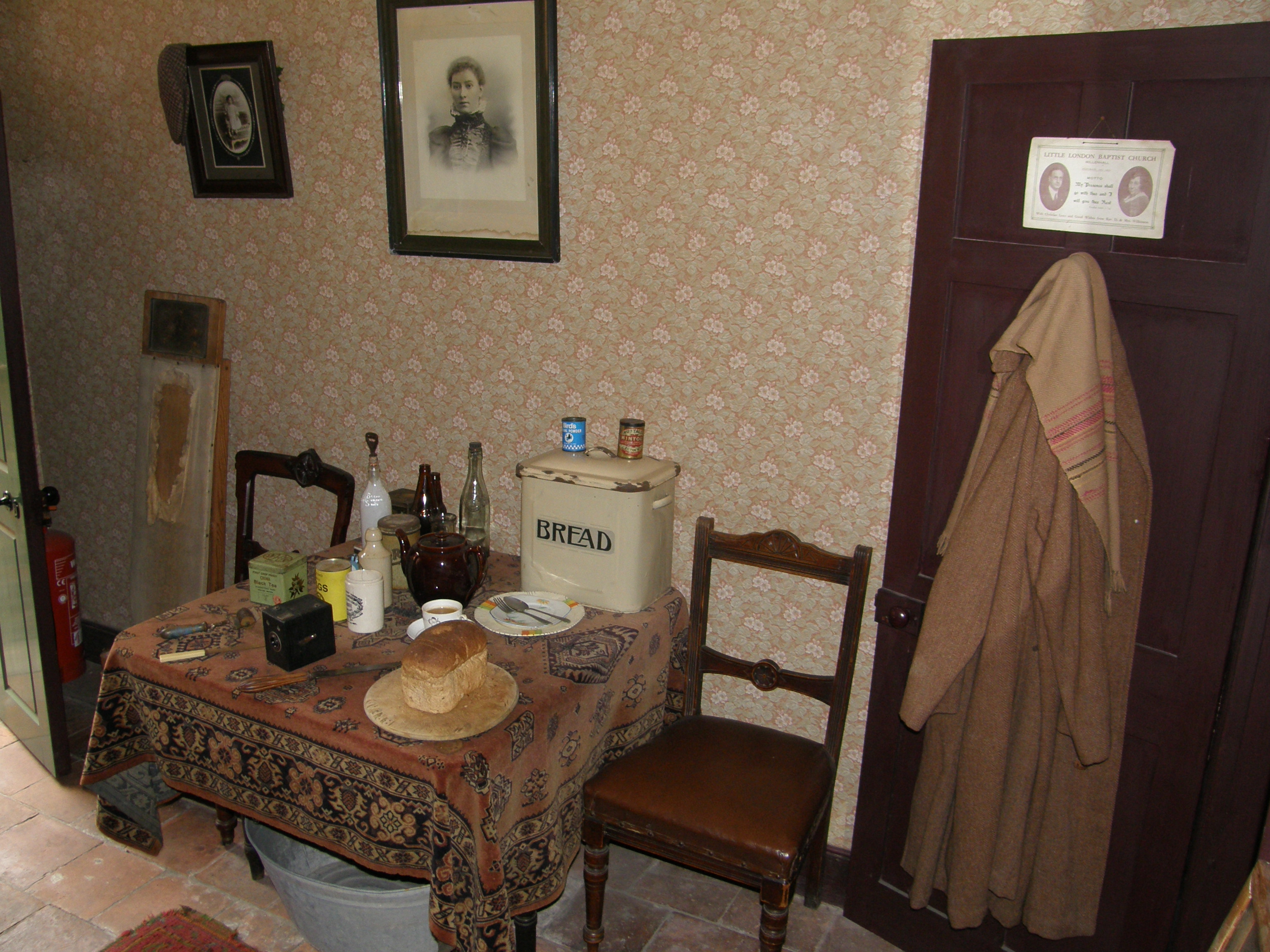 Down on the floor in the corner of George Mitchell’s kitchen by the fireplace is a strange metal item with foot shaped appendages. These are cobbler’s shoe lasts, and would be used to repair worn out shoes. In days gone by shoes would be an expensive part of your wardrobe – repaired regularly to ensure that they had a long life.