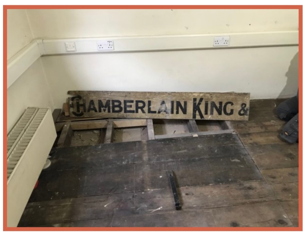 But the ghost of Chamberlain King and Jones lives on under the fist floor of one of the houses in Court 15 Inge Street. A floorboard has evidently been made from a repurposed shop sign and was found during renovation of the buildings in 2021.