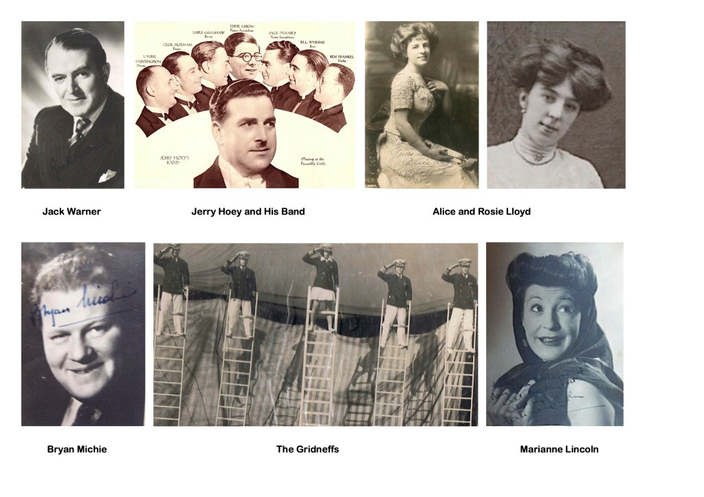 We did some research into the “Roses of Piccadilly” and could not find any evidence that the show mentioned by Ron existed. However, we did find a show called “Piccadilly Playtime” which was on at the Hippodrome in 1942 – this fits in with Fred’s “about 80 years ago”!