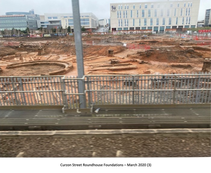 Tom was right. Almost 150 years later in the year 2020 the foundations emerged once more into the daylight. The work is part of the preparation of the site for the Birmingham Curzon Station for the HS2 railway. The station building is still there.